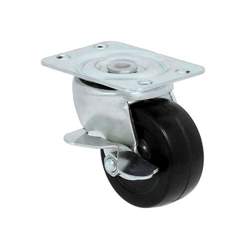 Rodaja de placa giratoria con rueda de hule duro con freno lateral 4″