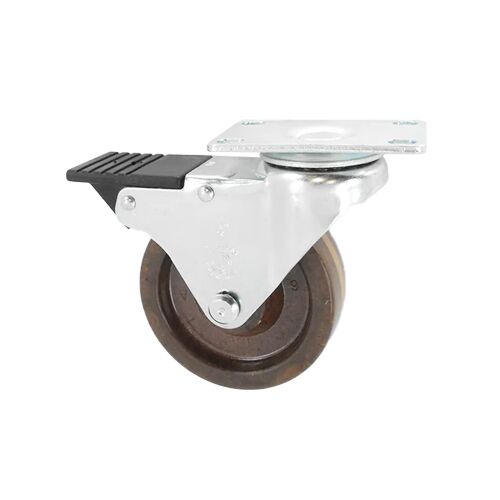Rodaja de placa giratoria con rueda fenólica de alta temperatura de 4″ con freno frontal